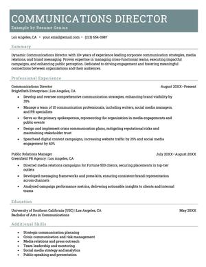 Communications professionals must be able to write effectively, think strategically, and keep up-to-date regarding the latest communications technologies — making their resume extremely important when applying for jobs.