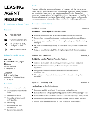 In the competitive leasing industry, a resume with well-quantified achievements will grab attention and strengthen your candidacy.